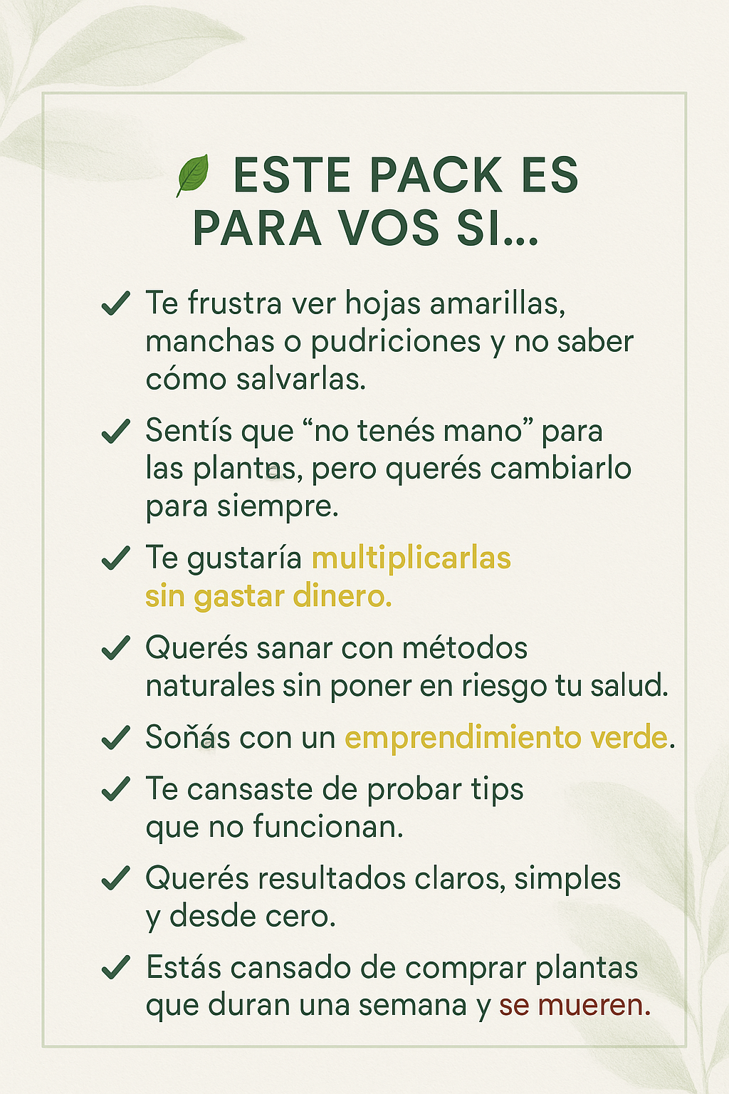 Sí. El pack incluye estrategias simples para multiplicar plantas y vender sin invertir casi nada. Tambien vas aprender a hacer productos naturales con tus plantas. y con el bonus de estrategias de venta, vas a crear tu emprendimiento en tu casa.